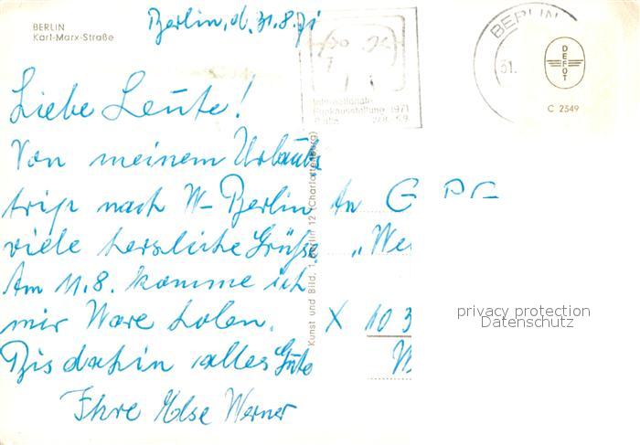 73007144 alte Postkarte BERLIN CITY Karl Marx Strasse postalisch gelaufen Erhaltung siehe scans [WerneD78] KatCode: 11110011000000