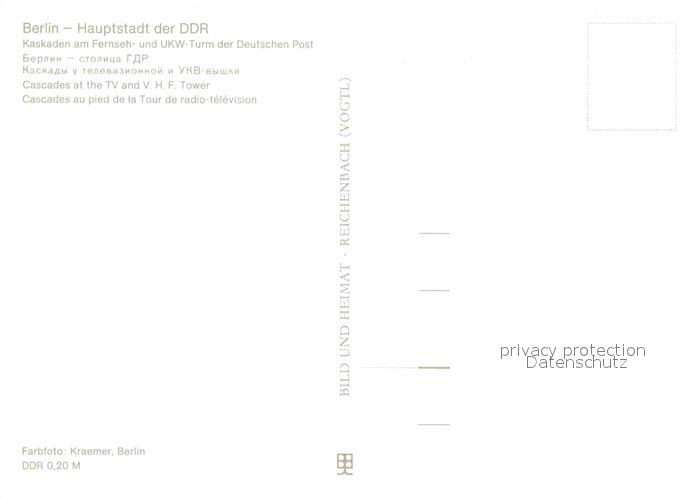 72651995 BERLIN CITY Kaskaden am Fernsehturm Wasserspiele Hauptstadt der DDR postalisch nicht gelaufen Erhaltung siehe scans [FriedD77] KatCode: 11110011000000