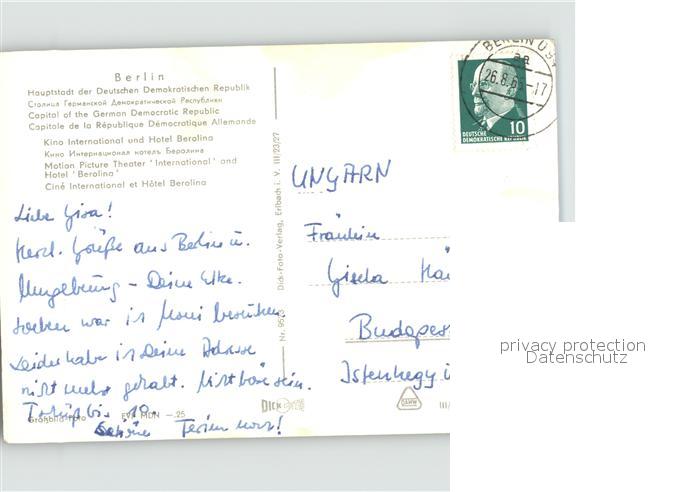 71973971 alte Postkarte BERLIN CITY Kino International Hotel Berolina postalisch gelaufen KatCode: 11110011000000