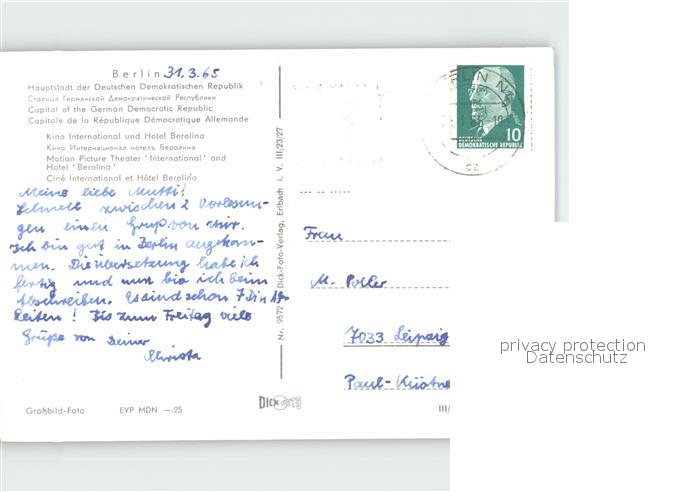 71985893 alte Postkarte BERLIN CITY Kino International Hotel Berolina postalisch gelaufen Erhaltung siehe scans KatCode: 11110011000000