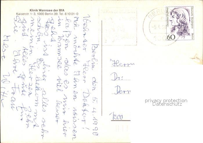 72614245 alte Postkarte BERLIN CITY Klinik Wannsee postalisch gelaufen Erhaltung siehe scans [LiesaD40] KatCode: 11110011000000
