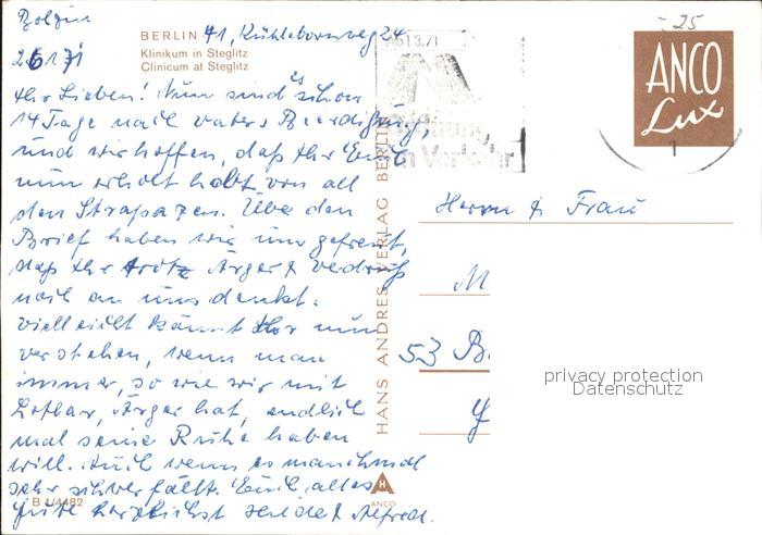 72424975 alte Postkarte BERLIN CITY Klinikum in Steglitz postalisch gelaufen Erhaltung siehe scans KatCode: 11110011000000