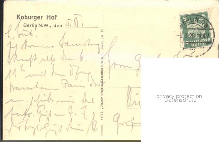 72151657 alte Postkarte BERLIN CITY Koburger Hof Gesellschaftsraeume postalisch gelaufen Erhaltung siehe scans KatCode: 11110011000000