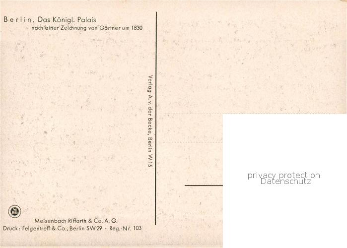 43498544 BERLIN CITY Koenigliches Palais nach Zeichnung von Gaertner postalisch nicht gelaufen Erhaltung siehe scans [KathaD81] Kath Katcode 11110011000000