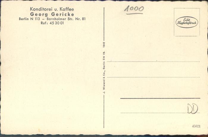 41400846 BERLIN CITY Konditorei Kaffee Gericke postalisch nicht gelaufen gute Erhaltung Alte Ansichtskarte Postkarte hz_F Katcode 11110011000000