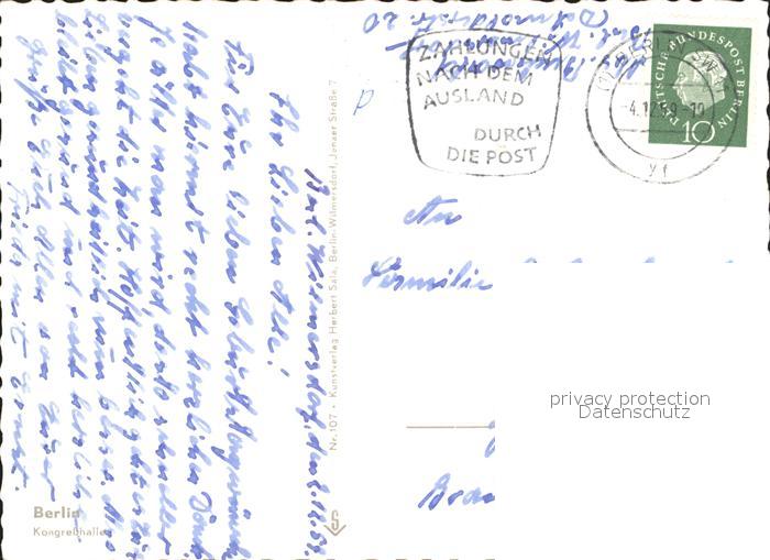 72253605 alte Postkarte BERLIN CITY Kongresshalle postalisch gelaufen Erhaltung siehe scans KatCode: 11110011000000
