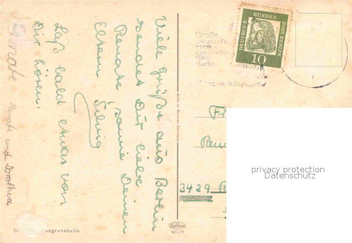 72785657 alte Postkarte BERLIN CITY Kongresshalle postalisch gelaufen Erhaltung siehe scans [AndreD76] KatCode: 11110011000000