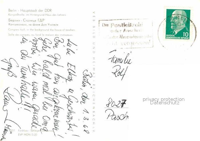 72626505 alte Postkarte BERLIN CITY Kongresshalle Haus des Lehrers Hauptstadt der DDR postalisch gelaufen Erhaltung siehe scans [FriedD77] KatCode: 11110011000000