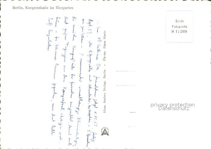 72152426 alte Postkarte BERLIN CITY Kongresshalle im Tiergarten postalisch gelaufen KatCode: 11110011000000