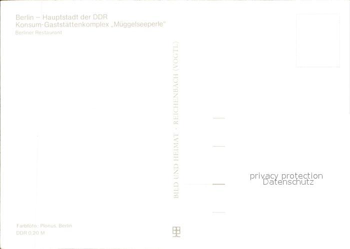 72037865 BERLIN CITY Konsum Gaststaette Mueggelseeperle postalisch nicht gelaufen Erhaltung siehe scans KatCode: 11110011000000