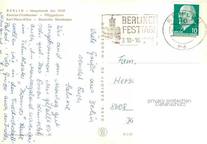 72647300 alte Postkarte BERLIN CITY Kosmos-Filmtheater Mueggelturm Karl-Marx-Allee postalisch gelaufen Erhaltung siehe scans [NatalD47] KatCode: 11110011000000