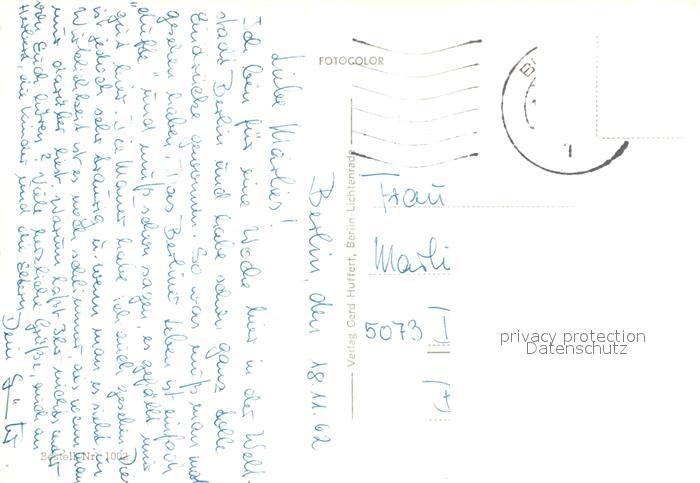 73012312 alte Postkarte BERLIN CITY Kuerfuerstendamm Platz der Luftbruecke Kongresshalle Autobahn postalisch gelaufen Erhaltung siehe scans [KathaD81] KatCode: 11110011000000