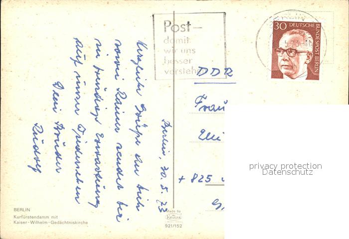 72420277 alte Postkarte BERLIN CITY Kurfuerstendam Kaiser-Wilhelm-Gedaechtniskirche postalisch gelaufen Erhaltung siehe scans KatCode: 11110011000000