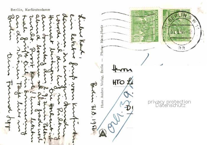 72816622 alte Postkarte BERLIN CITY Kurfuerstendamm postalisch gelaufen Erhaltung siehe scans [AndreD76] KatCode: 11110011000000