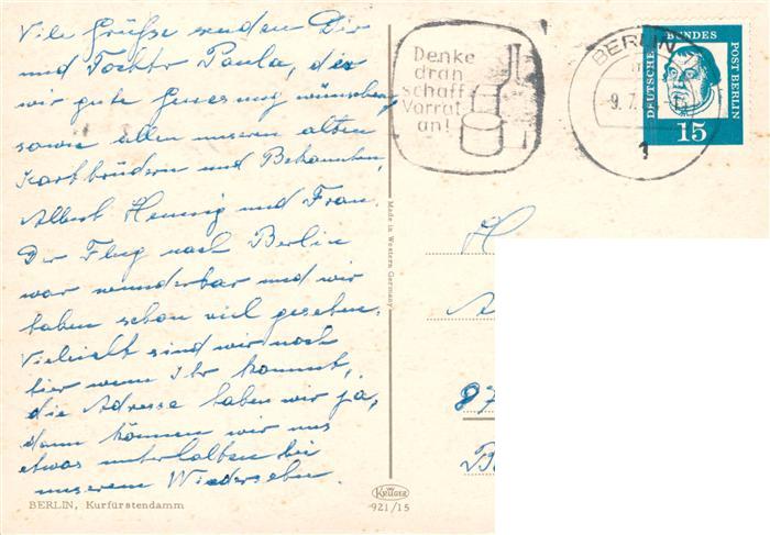 73906373 BERLIN CITY Kurfuerstendamm postalisch gelaufen Erhaltung siehe scans [WerneD78] alte Postkarte Wern Katcode 11110011000000