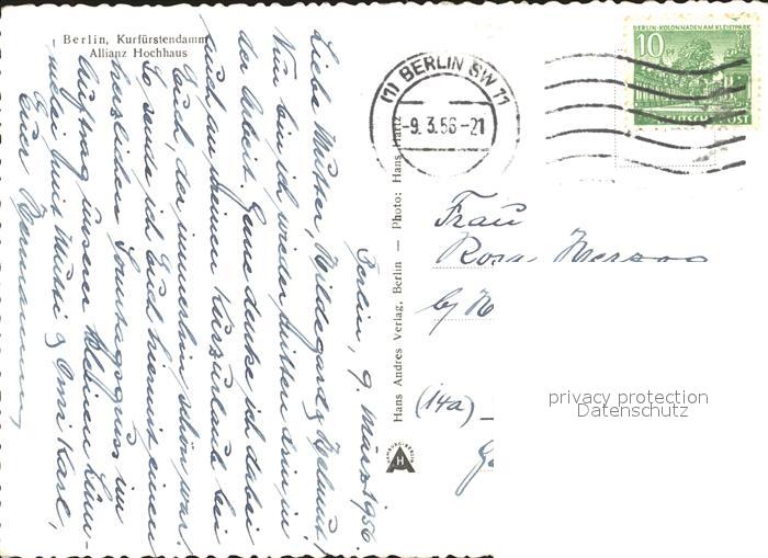 72091917 alte Postkarte BERLIN CITY Kurfuerstendamm Allianz Hochhaus postalisch gelaufen Erhaltung siehe scans KatCode: 11110011000000