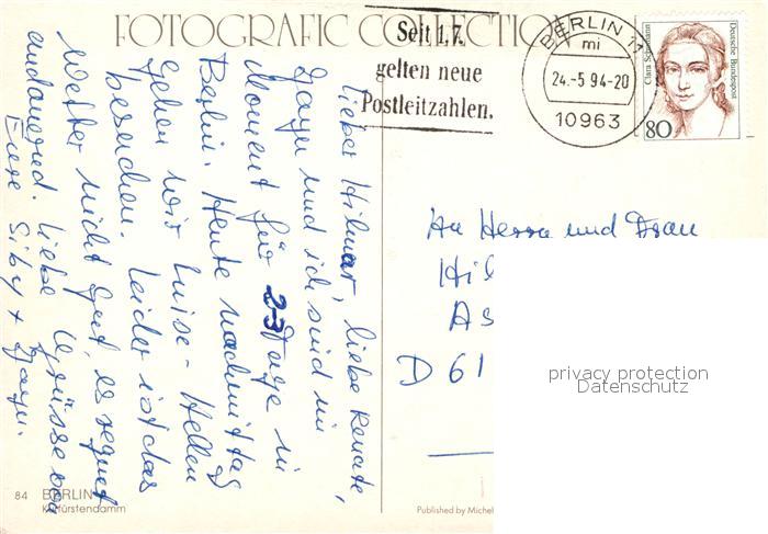 73084772 alte Postkarte BERLIN CITY Kurfuerstendamm bei Nacht postalisch gelaufen Erhaltung siehe scans [LiesaD40] KatCode: 11110011000000