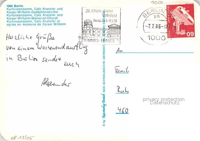 72908082 alte Postkarte BERLIN CITY Kurfuerstendamm Cafe Kranzler Kaiser-Wilhelm-Gedaechtniskirche postalisch gelaufen Erhaltung siehe scans [NatalD47] KatCode: 11110011000000