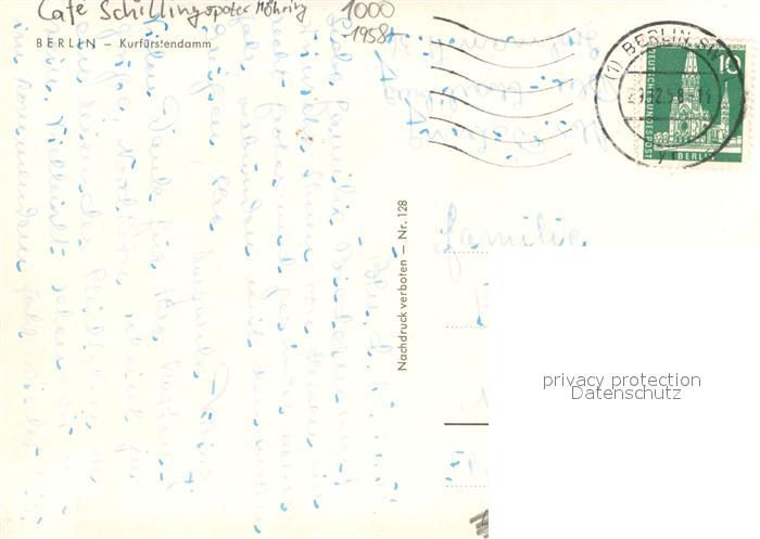 73749596 BERLIN CITY Kurfuerstendamm Cafe Schillingspeter postalisch gelaufen Erhaltung siehe scans [WerneD78] alte Postkarte Wern Katcode 11110011000000
