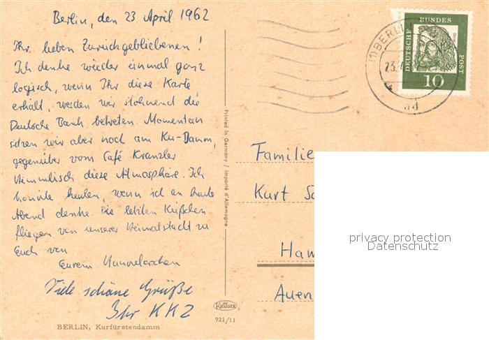 73128020 alte Postkarte BERLIN CITY Kurfuerstendamm Haus Wien postalisch gelaufen Erhaltung siehe scans [KathaD81] KatCode: 11110011000000