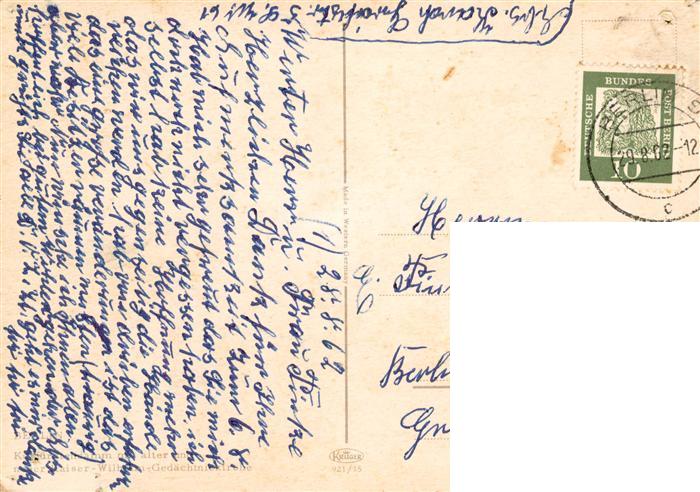 73909389 BERLIN CITY Kurfuerstendamm Kaiser Wilhelm Gedaechtniskirche postalisch gelaufen Erhaltung siehe scans [WerneD78] alte Postkarte Wern Katcode 11110011000000