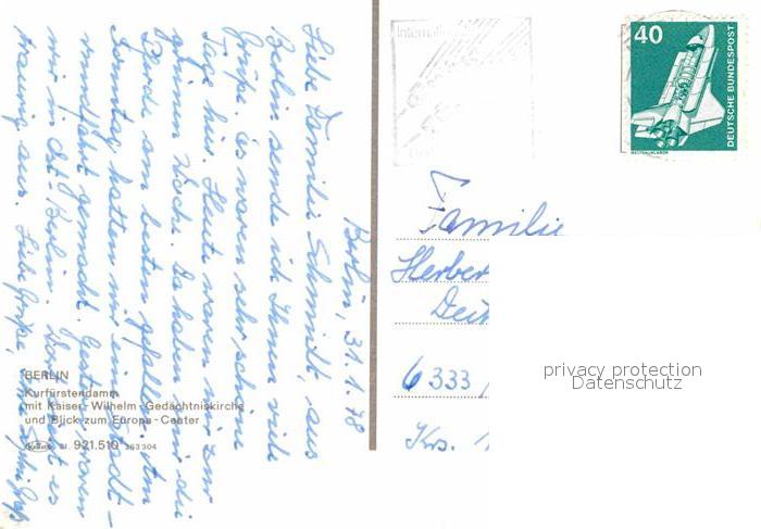 72852743 BERLIN CITY Kurfuerstendamm Kaiser Wilhelm Gedaechtniskirche Europa Center postalisch nicht gelaufen Erhaltung siehe scans [FriedD77] KatCode: 11110011000000