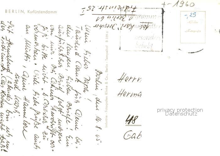 73140314 alte Postkarte BERLIN CITY Kurfuerstendamm Kaiser Wilhelm Gedaechtniskirche postalisch gelaufen Erhaltung siehe scans [FriedD77] KatCode: 11110011000000
