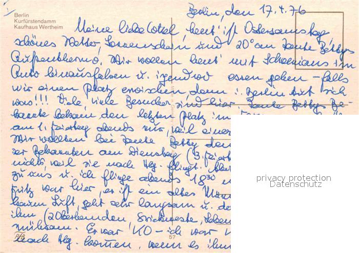 72627644 BERLIN CITY Kurfuerstendamm Kaufhaus Wertheim postalisch nicht gelaufen Erhaltung siehe scans [WerneD78] KatCode: 11110011000000