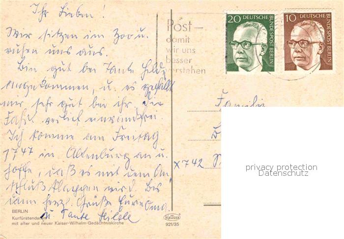 72857420 alte Postkarte BERLIN CITY Kurfuerstendamm mit alter und neuer Gedaechtniskirche postalisch gelaufen Erhaltung siehe scans [WerneD78] KatCode: 11110011000000