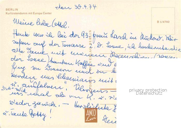 72627627 alte Postkarte BERLIN CITY Kurfuerstendamm mit Europa Center postalisch gelaufen Erhaltung siehe scans [WerneD78] KatCode: 11110011000000