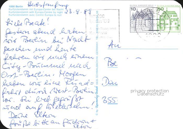 72597180 alte Postkarte BERLIN CITY Kurfuerstendamm mit Europa Center bei Nacht postalisch gelaufen Erhaltung siehe scans [WerneD78] KatCode: 11110011000000
