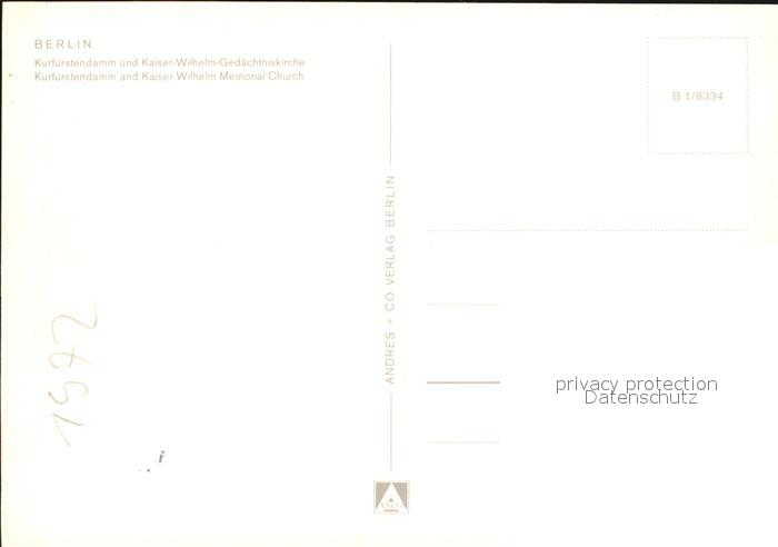 72563552 BERLIN CITY Kurfuerstendamm und Kaiser-Wilhelm-Gedaechtniskirche postalisch nicht gelaufen Erhaltung siehe scans [LiesaD40] KatCode: 11110011000000
