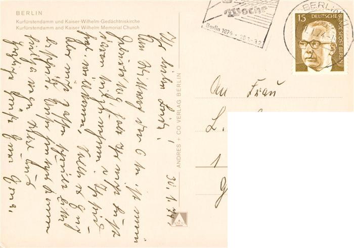 73915150 BERLIN CITY Kurfuerstendamm und Kaiser Wilhelm Gedaechtniskirche postalisch gelaufen Erhaltung siehe scans [WerneD78] alte Postkarte Wern Katcode 11110011000000