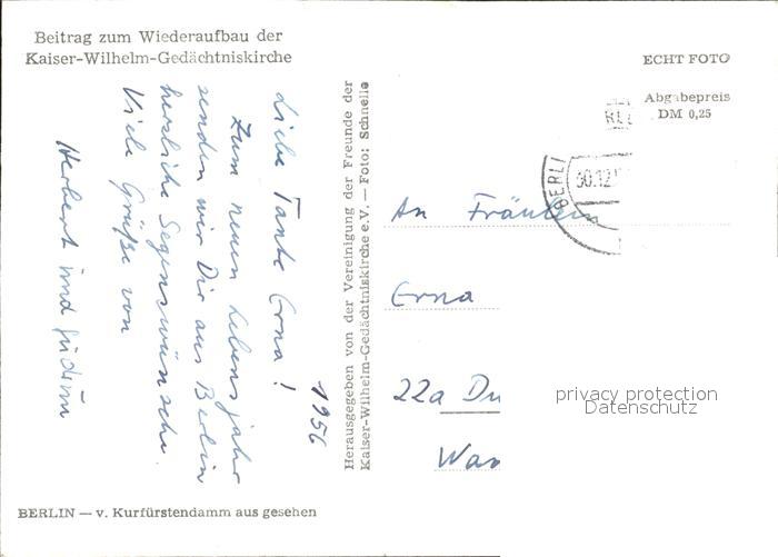 72097896 alte Postkarte BERLIN CITY Kurfuerstendamm Wiederaufbau Kaiser-Wilhelm-Gedaechtniskirche postalisch gelaufen Erhaltung siehe scans KatCode: 11110011000000