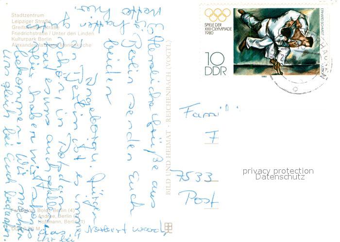 72953605 alte Postkarte BERLIN CITY Leipziger Str Greifswalder Str Friedrichstr Unter den Linden Kulturpark Alexanderplatz Marienkirche postalisch gelaufen Erhaltung siehe scans [WerneD78] KatCode: 11110011000000