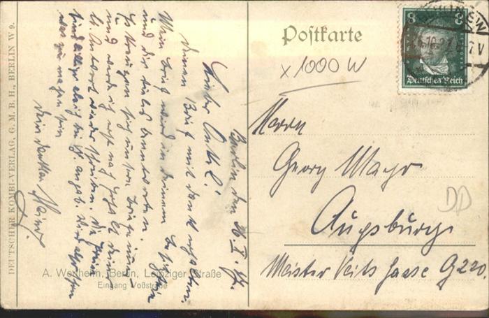 41038782 BERLIN CITY Leipziger Strasse postalisch gelaufen Alte Ansichtskarte Postkarte alte Postkarte Chri Katcode 11110011000000