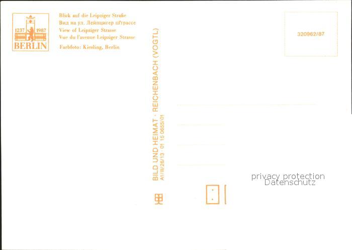 72352712 BERLIN CITY Leipziger Strasse Fernsehturm postalisch nicht gelaufen Erhaltung siehe scans KatCode: 11110011000000