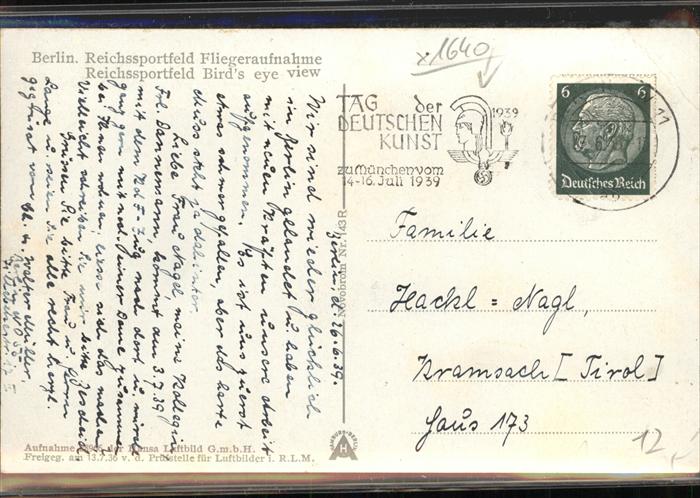 41406822 BERLIN CITY Luftaufnahme vom Reichssportfeld postalisch gelaufen Erhaltung siehe scans Alte Ansichtskarte Postkarte alte Postkarte hz_B Katcode 11110011000000