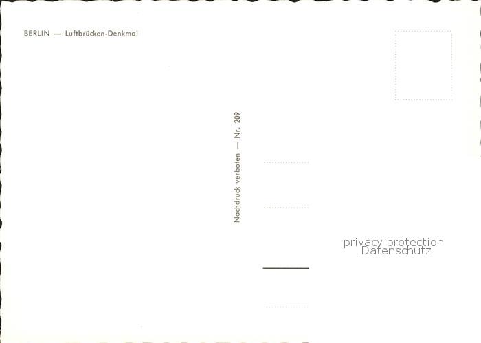 72285808 BERLIN CITY Luftbruecken Denkmal postalisch nicht gelaufen Erhaltung siehe scans KatCode: 11110011000000