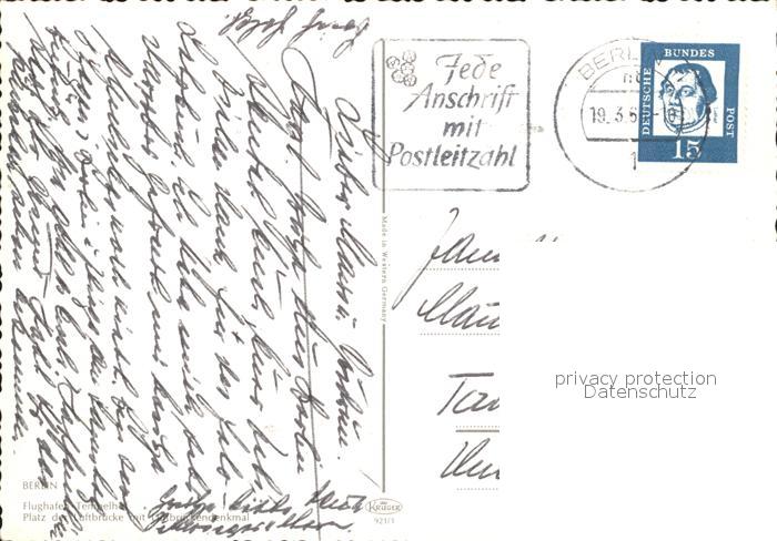 72368286 alte Postkarte BERLIN CITY Luftbruecken Denkmal Tempelhof postalisch gelaufen Erhaltung siehe scans KatCode: 11110011000000