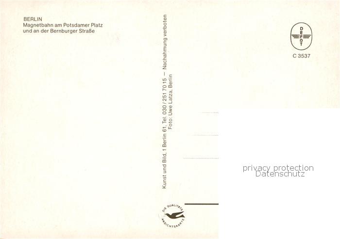 73833459 BERLIN CITY Magnetbahn am Potsdamer Platz Magnetbahnhof Bernburger Strasse postalisch nicht gelaufen Erhaltung siehe scans [WerneD78] Wern Katcode 11110011000000