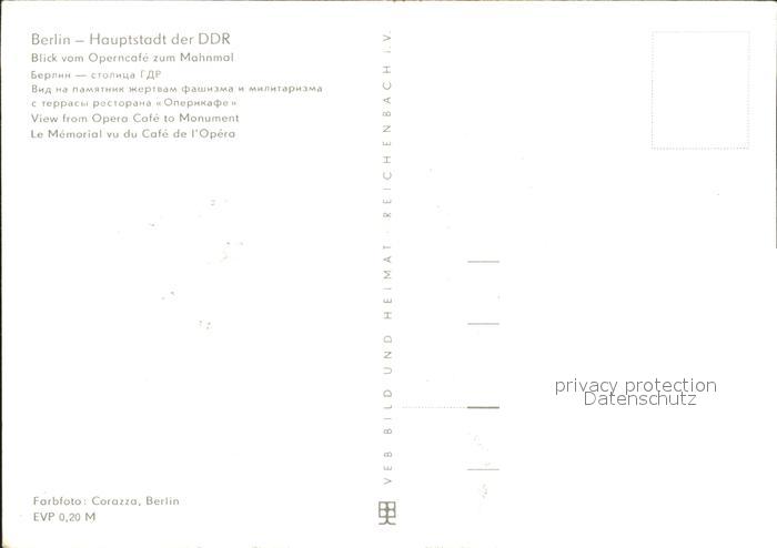 72373250 BERLIN CITY Mahnmal Operncafe postalisch nicht gelaufen Erhaltung siehe scans KatCode: 11110011000000