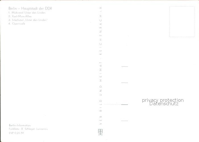 72136100 BERLIN CITY Mahnmal Unter den Linden Interhotel Karl Marx Allee Operncafe postalisch nicht gelaufen Erhaltung siehe scans KatCode: 11110011000000