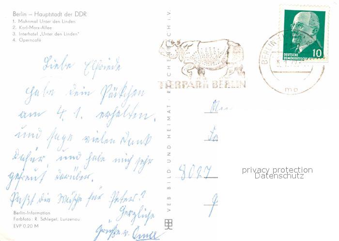 72626506 alte Postkarte BERLIN CITY Mahnmal Unter den Linden Springbrunnen Karl Marx Allee Interhotel Operncafe Hauptstadt der DDR postalisch gelaufen Erhaltung siehe scans [FriedD77] KatCode: 11110011000000