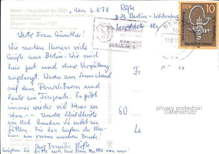 72046926 alte Postkarte BERLIN CITY Marienkirche Anlage Fernseh UKW Turm Deutsche Post postalisch gelaufen Erhaltung siehe scans KatCode: 11110011000000