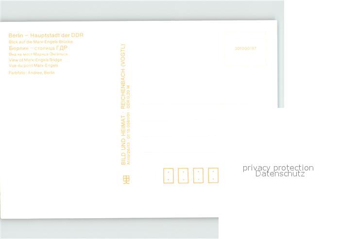 72390930 BERLIN CITY Marx-Engels-Bruecke postalisch nicht gelaufen Erhaltung siehe scans KatCode: 11110011000000