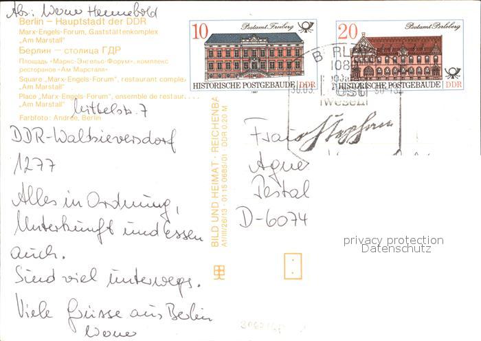 72446911 alte Postkarte BERLIN CITY Marx-Engels-Forum postalisch gelaufen Erhaltung siehe scans KatCode: 11110011000000