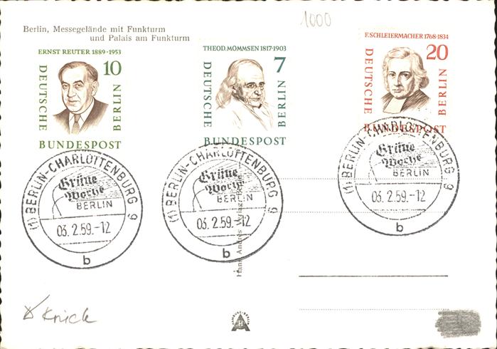 41288209 BERLIN CITY Messeglaende Funkturm Gruene Woche postalisch gelaufen Erhaltung mit Maengel Alte Ansichtskarte Postkarte alte Postkarte hz_C Katcode 11110011000000