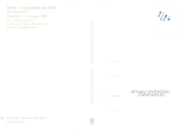73082189 BERLIN CITY Mueggelturm postalisch nicht gelaufen Erhaltung siehe scans [KathaD81] KatCode: 11110011000000
