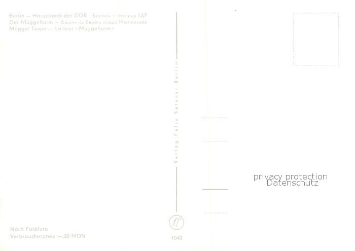 73125196 BERLIN CITY Mueggelturm postalisch nicht gelaufen Erhaltung siehe scans [NatalD47] KatCode: 11110011000000